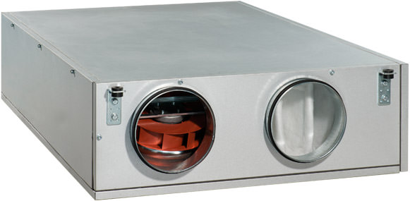 - В конструкцию установки входит приточный и вытяжной центробежный вентилятор одностороннего всасывания с загнутыми назад лопатками рабочего колеса турбины и не требующими обслуживания EC-двигателями с внешним ротором и встроенной тепловой защитой, пластинчатый противоточный рекуператор, электрический нагреватель.